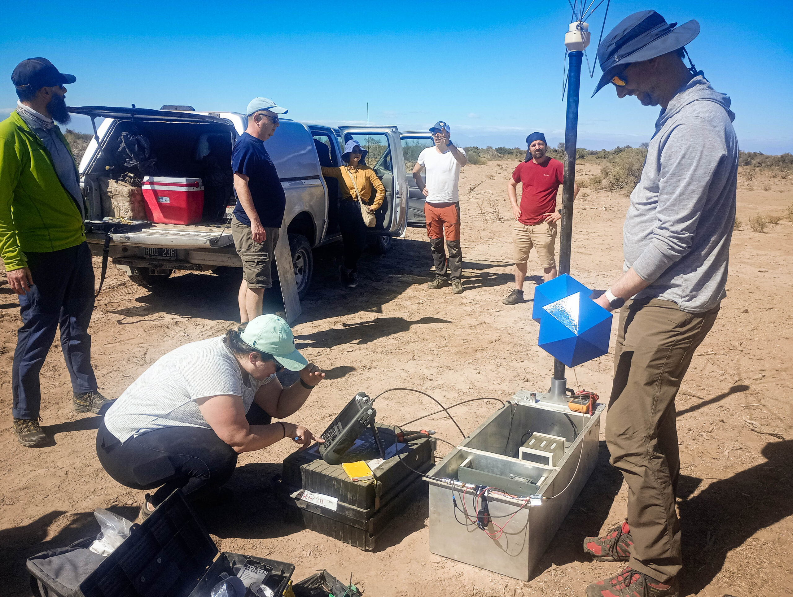 Acompañados por el equipo del Instituto de Tecnologías en Detección y Astropartículas (ITeDA) y del Instituto Balseiro —Centro Atómico Bariloche de la Comisión Nacional de Energía Atómica—, los investigadores provenientes de Francia, Estados Unidos y España realizaron un recorrido de reconocimiento por distintas zonas de interés al oeste de la provincia. Durante la visita también efectuaron mediciones y recolección de datos, ya que las particularidades geográficas del territorio sanjuanino son determinantes para el desarrollo del proyecto.