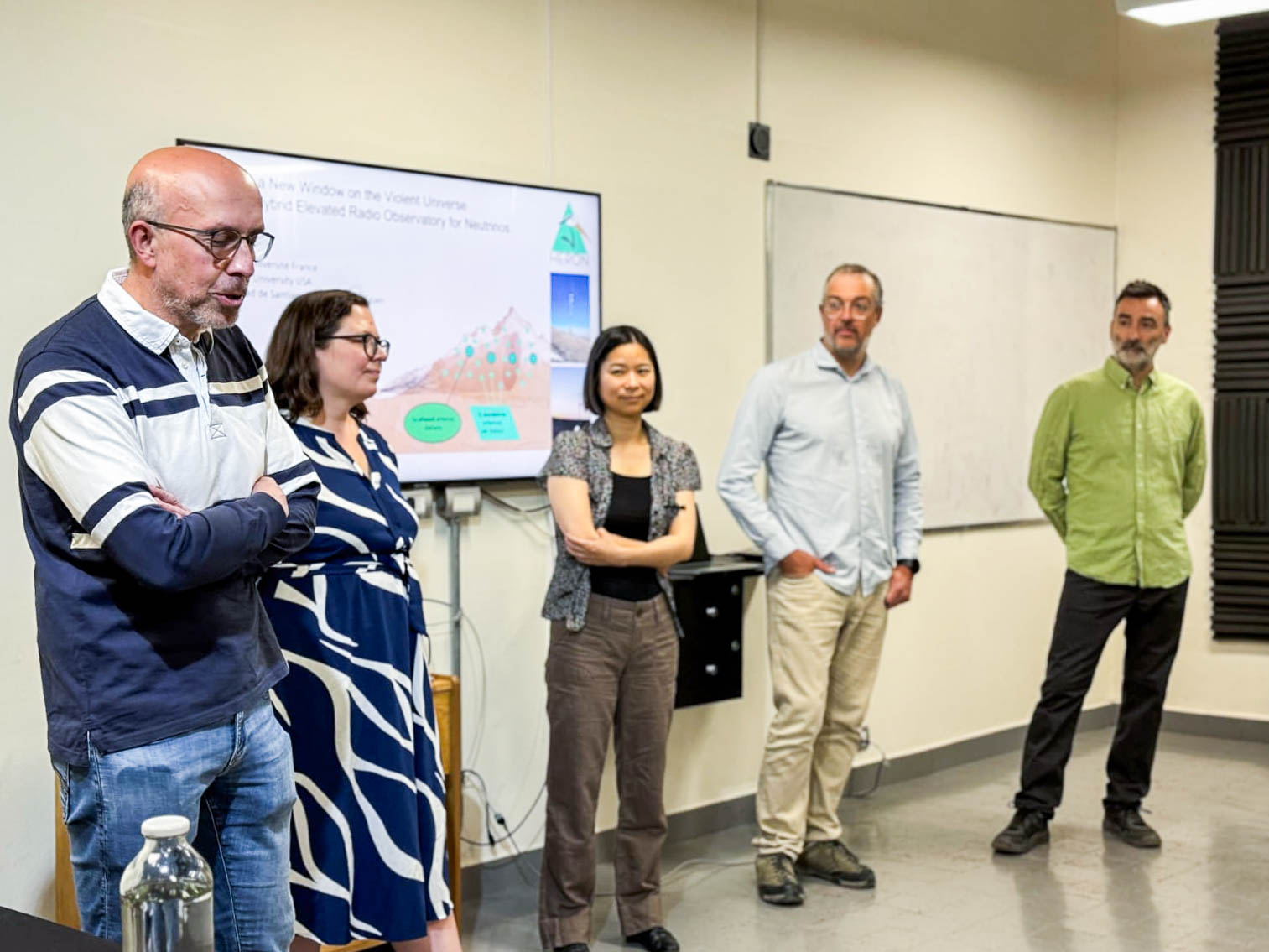 El encuentro contó con la presencia de Olivier Martineau (LPNHE, Sorbonne University), Kumiko Kotera (IAP, CNRS), Stephanie Wissel (Penn State University), Jaime Álvarez-Muñiz (University of Santiago de Compostela) y el Dr. Federico Sánchez (CNEA-ITeDA), por parte de la colaboración HERON.