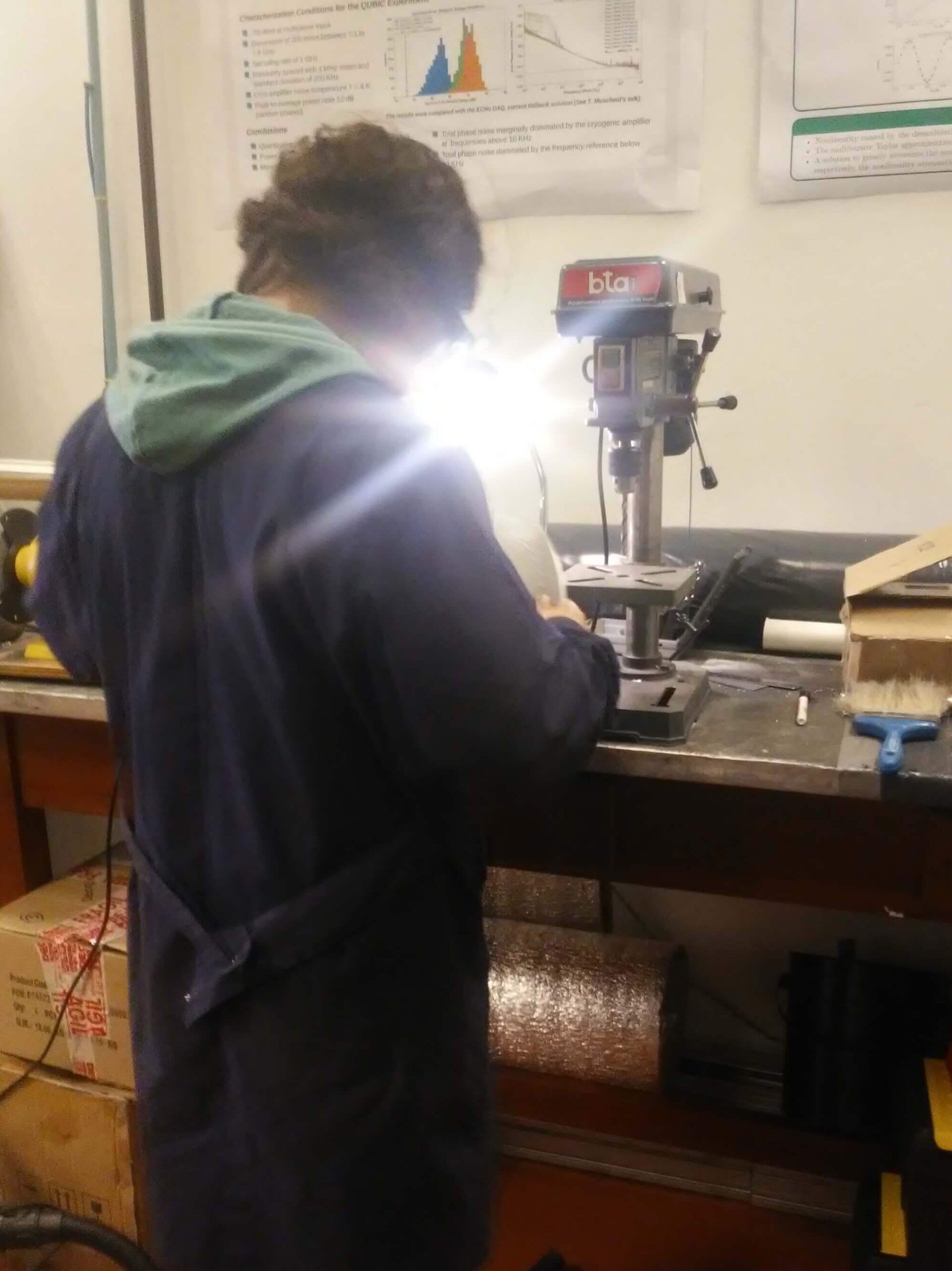Este laboratorio cuenta con un criostato de dilución LD250 de la empresa Bluefors, capaz de alcanzar una temperatura base de 10 mK. Está equipado con 8 líneas de alta frecuencia de hasta 18 GHz y 48 líneas para mediciones en corriente continua, de las cuales 24 son superconductoras.